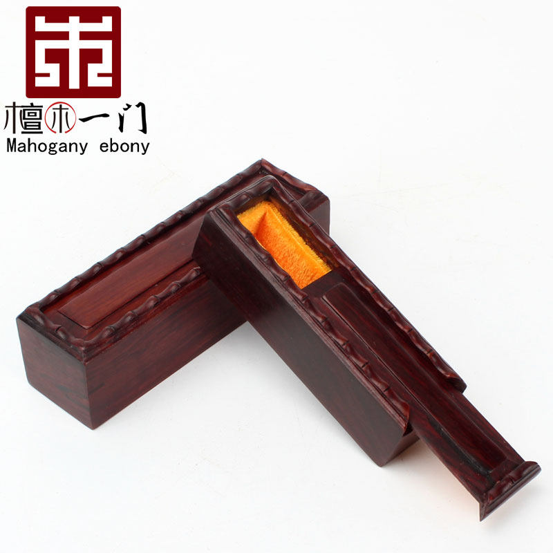 實木質印章盒紫檀木書法印鑑私章公章收納盒復古可攜式紅木長條木盒